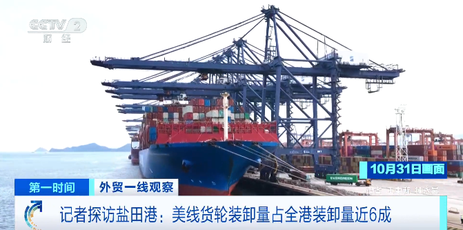 中美吉隆坡经贸磋商联合安排发布后,记者到盐田港进行了走访。盐田港的工作人员告诉记者,10月31日在泊的美线货轮一共有8艘,装卸量达5万个标准箱,占当天全港总装卸量的近六成。